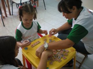 This Colonia de Ferias is a two-week long summer camp for Autistic children. The first session started this past Monday and is for kids between the ages of 2 and 7. The next starts when this one ends and is for kids age 8 to 14. We have 11 (soon to be 12, I think) kids enrolled in the camp, which allows most of the kids to have two interns each, who are from the local university, all majoring in things like Nutrition, Psychology, Physiotherapy, etc. Three of the kids are not Autistic; they are siblings of other kids enrolled in the camp. They are split up into three rooms based on color (YEAH, GREEN) and work on a series of activities with them, such as educational games, arts, sports, social interactions (trying to get them to play together can be hard haha), and other stimulating activities. The kid that I was assigned happens to be one of the few "normal" ones (once again, don't go PC on my ass)--his name is Carlos Vinicius. He's 6, really talkative, and has a great imagination. I really really like my kid, he just doesn't require the attention that the other kids, especially in the green room, need. The professionals at Cre-Ser said that they wanted me to experience working with an Autistic child (to which I was like, well, considering I came from the US to Brasil for that, yeah, that would be nice lol) so they told me to move freely around all the children and help and interact as much as I wanted without worrying about who I was assigned to. And by that I mean that Rose, who is the professional in charge of our room, would watch over Vinicius as he draws while I would go settle Gisele's tauntrum and get her to play with numbers instead. It worked out great the past two days, because the other children in my room are Gisele and Pedro Victor, two of the most adorable little kids I've EVER seen.